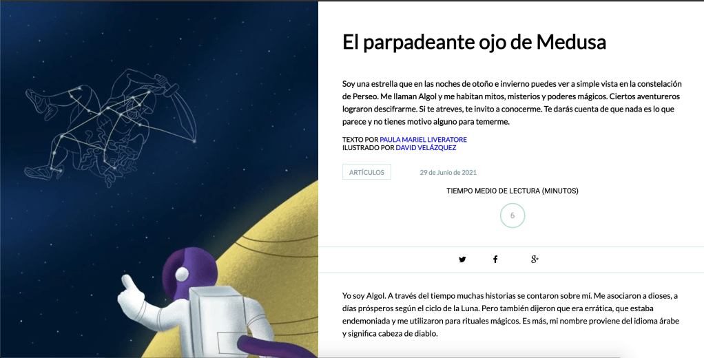 Una historia sobre la estrella Algol, mitos y leyendas que se construyeron para intentar explicar su «érratico» y misterioso comportamiento en Principia Kids.