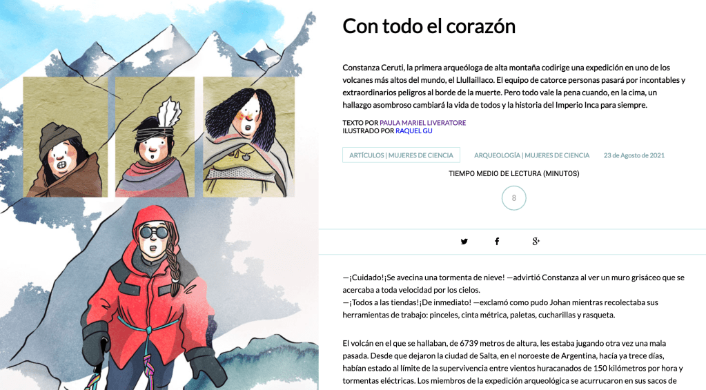 Descubre esta aventura de ficción que tiene como protagonista a Constanza Ceruti, primera arqueóloga de alta montaña, en su ascenso al volcán Llullaillaco. Una aventura al borde de la muerte que cambiará la historia del Imperio Inca. Para leerla en: Principia Kids.