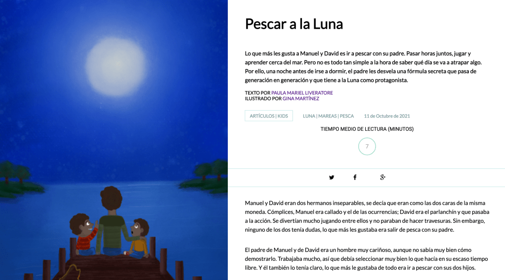 En esta historia, dos pequeños van a pescar con su papá, quién va a arrojar luz sobre este asunto🧐. Si quieres unirte a ellos, tal vez puedas “Pescar la luna”.😉 Para leerla en: Principia Kids.
