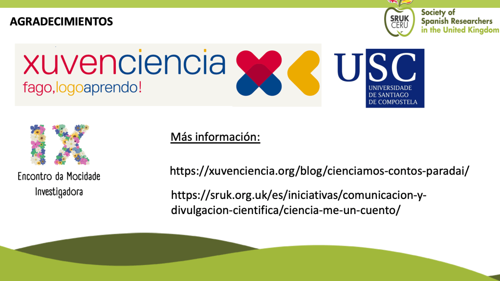 22/06/2022 – Participación en la plenaria de Ciéncia-me un cuento organizado por CERU y Xuvenciencia en la Facultad de biología de la Universidad de Santiago de Compostela, España.
